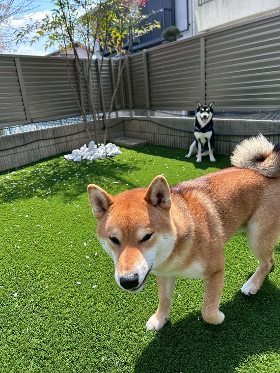 綺麗になった庭で元気に走り回るわんこ達